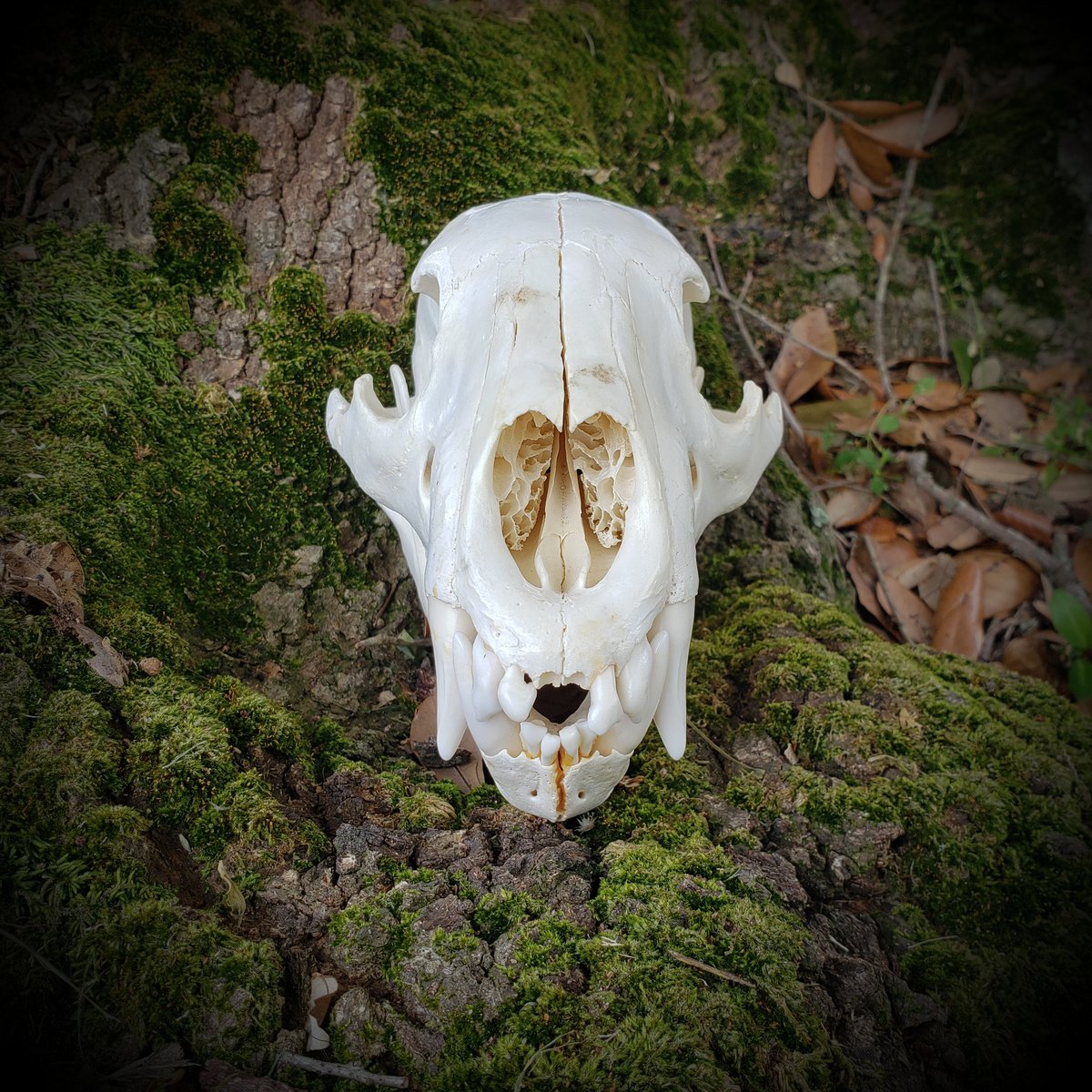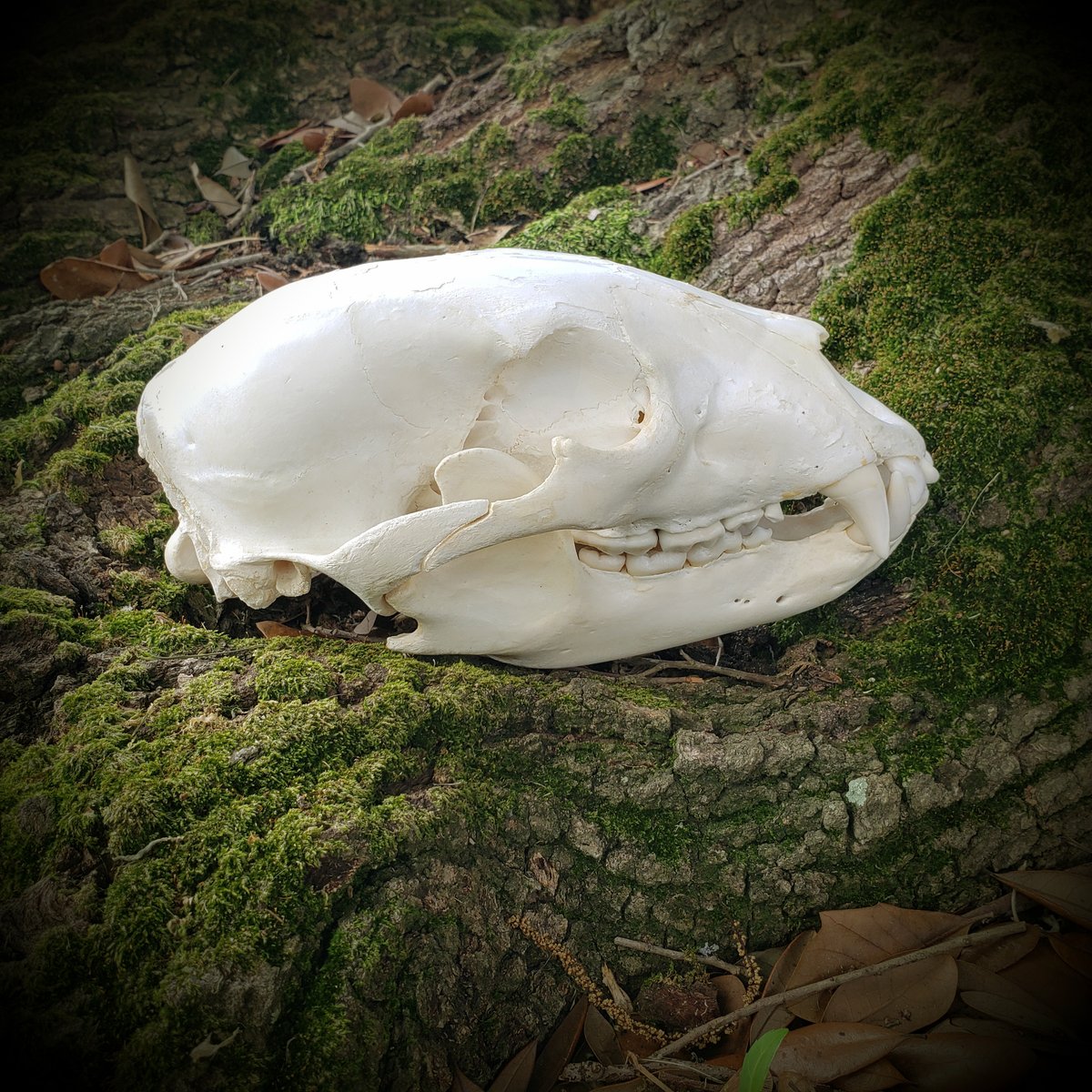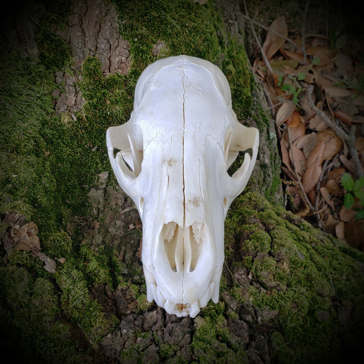 This young Black Bear comes from an older collection. Professionally cleaned. Appears to have been sprayed with clear sealant, some of which is flaking off to show whiter bone underneath. Delicate nasal bones intact. Missing four incisors and a couple of tiny premolars behind the canines. Teeth show almost no wear and are in good condition, though the front teeth are quite wonky.