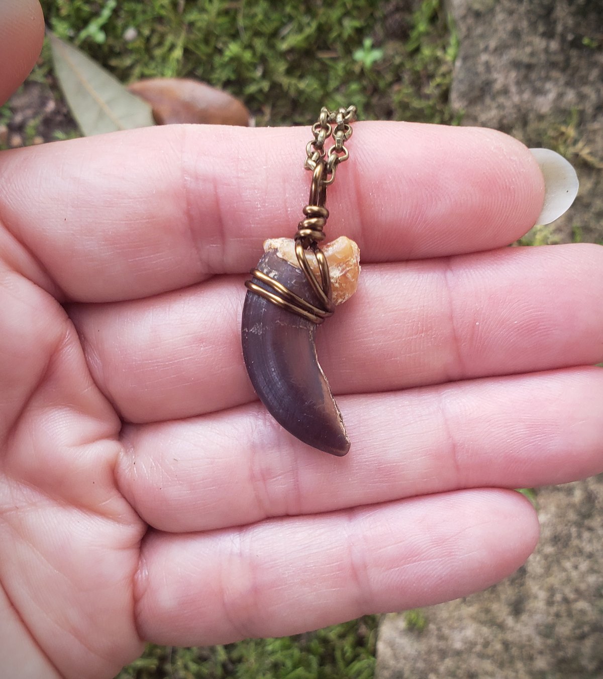 This pendant is made with a real wire-wrapped Coywolf claw (hybrid of wolf and coyote) and hangs from a 24" chain. Natural and unsealed. Claw measures 1.25" over the top curve. Legal anywhere.