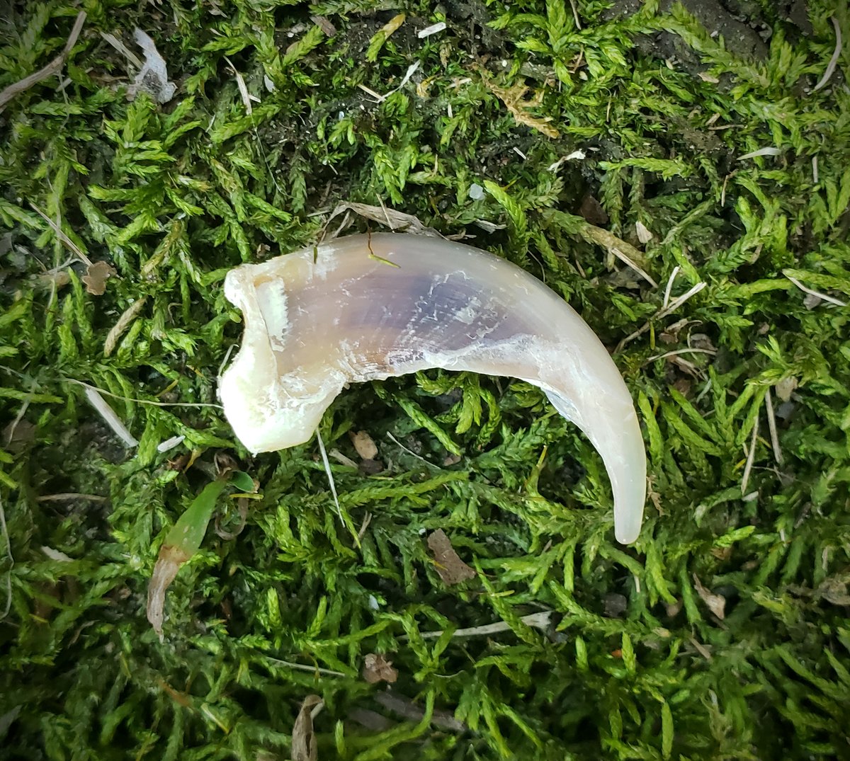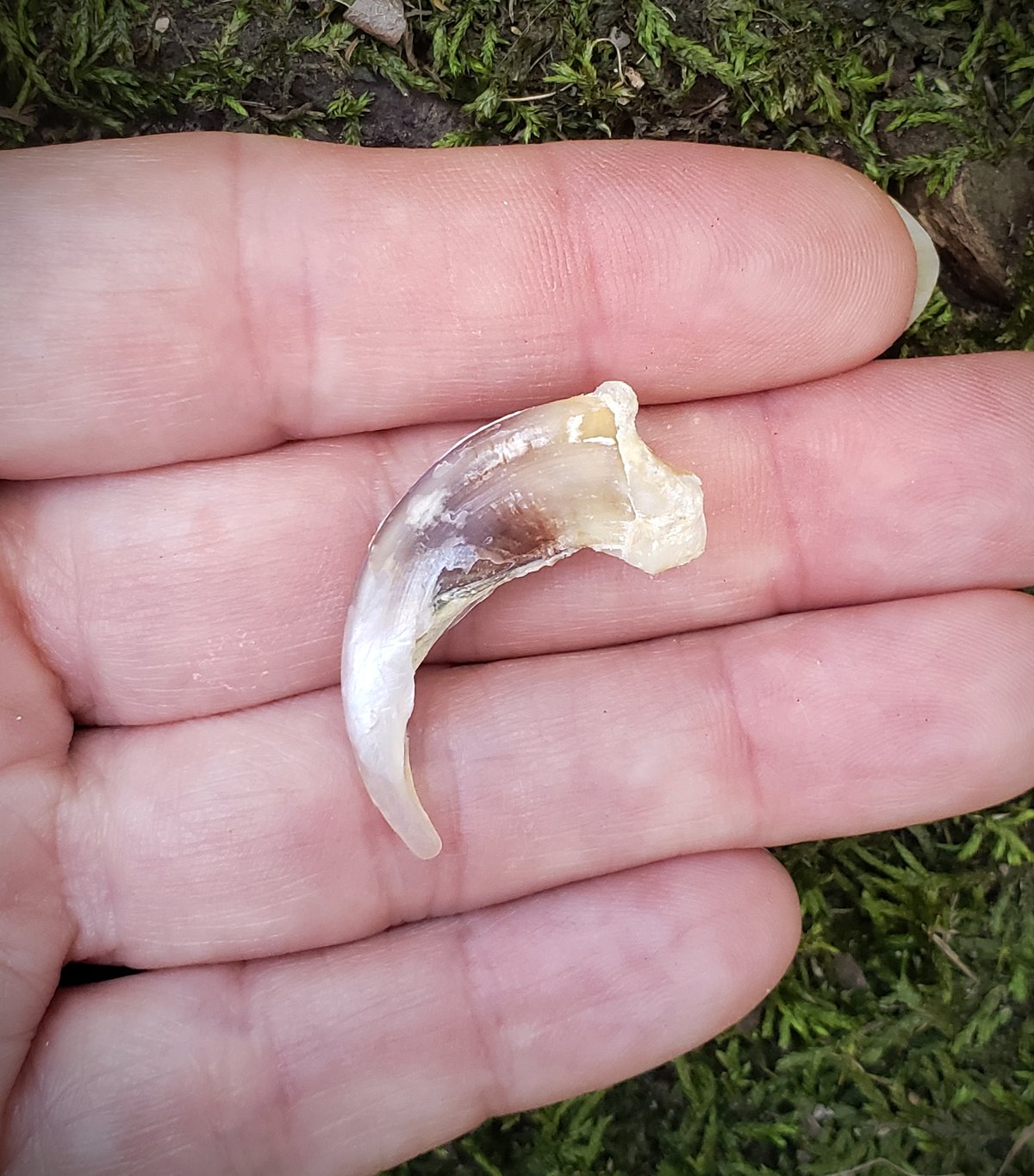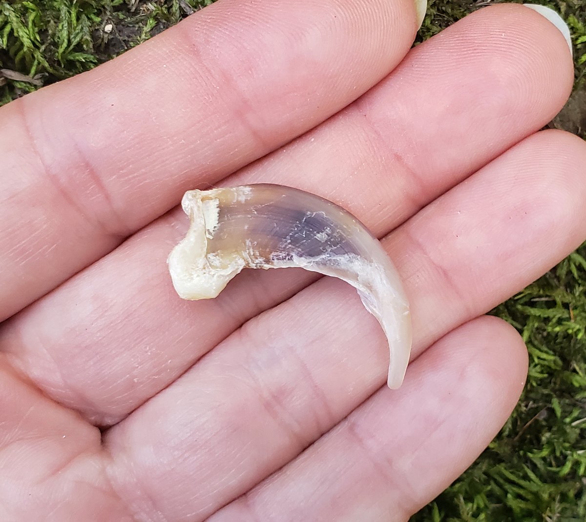 This genuine claw is from a white Grey Wolf (Canis lupus). It is pale with an ivory tip. There is some flaking on each side. Hard to find in this color.